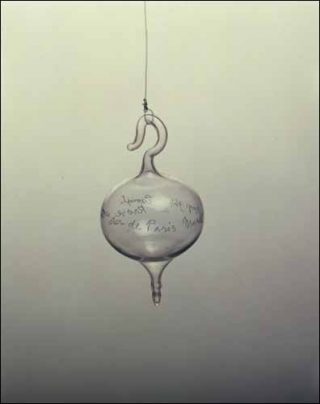 — Air de Paris, 1964. Verre et bois. 14,5 x 8,5 x 8,5 cm. Réplique réalisée sous la direction de Marcel Duchamp par la Galerie Schwarz, à Milan, en 1964. Original créé à Paris, en décembre 1919. Quatrième version du ready-made.