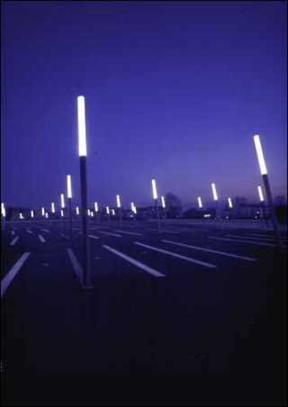 Les voies rapides, grises et froides, remodelées par les couleurs acidulées des marques commerciales d’Alain Bublex, côtoient les intérieurs lumineux, et vidés de leurs occupants, de Tatiana Trouvé. Y sont abandonnés des vestiges d’appareillages à la rationalité aussi barbare que mystérieuse.