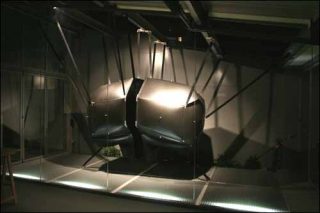 — Installation ZNS (Zentralnervensystem), 2006. Commande particulière de Marc et Josée Gensollen. Structure en alliage d’aluminium anodisé noir. Polyester enduit de polyuréthane noir, sangles de suspension.