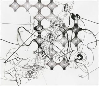 — Albert Oehlen, Conduction 9, 2011. Charbon de bois et acrylique sur toile. 210 x 270 cm