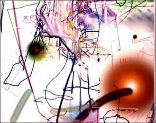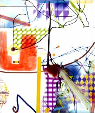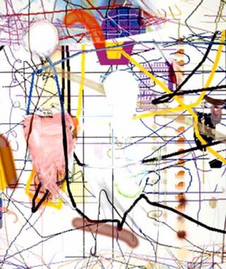 Albert Oehlen trace en effet un sillon entre une peinture qu’il cherche à dépasser, et l’outil informatique qu’il essaie de surpasser (ou serait-ce l’inverse?) Il s’inscrit non pas dans un entre-deux, mais dans une rencontre — que l’on aurait pu croire irréalisable —, où il est toujours, somme toute, question de «toile», qu’il s’agisse de nouvelles technologies ou de peinture…