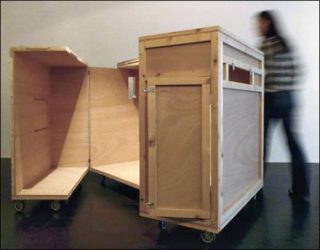 Une dernière Å“uvre (House to House), sera présentée dans la Box du centre d’art. Déjà existante, elle est inspirée des maisons de poupée et de l’esthétique des caisses de transport, elle contient une exposition collective itinérante qui s’enrichit d’Å“uvres différentes à chaque étape, par les travaux d’artistes, sélectionnés par Jeanne Susplugas.