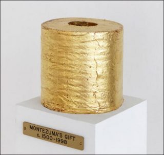 — Paul Kos, Tunnel, 1995. Table en bois, fromage, train miniature et rails. 85 x 180 x 95 cm
