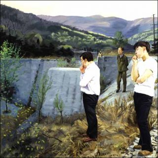 Ces greffes (le gaspillage capitaliste sur l’effort de survie collective) pourraient virer au cauchemar. A l’instar de ces lapins blancs hybrides, qui, perchés sur des arbres morts, lissent les plumes de leurs ailes (Xiao Yu), et de ces moutons jaunes, ou chevaux bleus, dilatés comme des baudruches prêtes à exploser. Maître du réalisme cynique, Fang Lijun dépeint, sur de grands rouleaux de papier de riz, un monde sans perspective : la masse (là où se noie toute individualité) y est figée d’effroi, alors que l’individu isolé est au bord de la noyade.