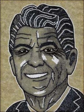 Les 43 portraits en perles, réalisés dans des tons gris et argent, évoquent la tradition des gravures et des portraits officiels en noir et blanc montrant le président sous son meilleur jour. En général, les électeurs ne votent pas pour un homme, mais pour son image, et Liza Lou ne fait qu’accentuer ce jeu des apparences. Les portraits renvoient aussi aux effigies présidentielles qui abondent dans la culture populaire, depuis les timbres jusqu’aux badges en passant par toutes sortes de bibelots kitsch.