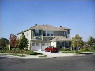 La prise de vue frontale d’une maison luxueuse dans une banlieue californienne est accrochée d’un côté de la salle. Le gazon, bien vert, est parfaitement tondu. Une grosse voiture est garée devant la porte du garage dans l’allée impeccablement propre. Derrière la maison, on aperçoit une perspective plongeante sur une vallée arborée, la ville paraît très loin. Le ciel est d’un bleu profond comme dans un livre pour enfants.