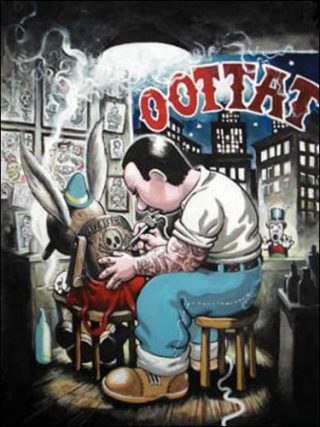 Ses albums à l’humour noir et grinçant reprennent des personnages de la culture populaire du XXIe siècle avec ses archétypes —du trader au SDF— pour mieux accabler notre époque. Sont ainsi réunis Monsieur Ferraille (un personnage tout en métal n’hésitant pas à conseiller à un petit garçon de boire de l’alcool plutôt que de faire du sport), Pat Boon Happy End (les déboires d’un personnage veule et malchanceux sur fond de crise économique), Super Negra (l’histoire désopilante d’un Mickey mutant et pêcheur à la ligne), Welcome to the Death Club, Smart Monkey (la bataille impitoyable des petits et des faibles pour la survie) ou encore Wizz et Buzz.