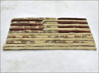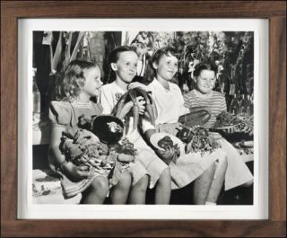 La série «Victory Gardens» a pour point de départ un programme politique incitant les civils américains à cultiver leur jardin, pendant les première et seconde guerres mondiales. Ces jardins de la victoire, soutenus par une imagerie de propagande, avaient pour but de contribuer à nourrir la population et de participer à l’effort de guerre. Dans l’exposition, des photographies d’époque, dont une dans laquelle on voit des jeunes filles posant fièrement avec leurs légumes récoltés, révèlent et questionnent cette propagande et l’engagement qui en découle. L’installation-sculpture, Victory Garden (2011), est constituée de bandes construites alternativement avec des sacs de jute entassés et de la fausse pelouse, évoquant le jardin mais aussi les tranchées. Le tout forme un drapeau américain au sol, que les dimensions impressionnantes de l’oeuvre masquent dans un premier temps.