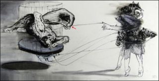 Les travaux récents de Mohamed Lekleti interrogent le corps entravé dans sa diversité parcellaire: fusion improbable du masculin et du féminin, association de chevaux cabrés et d’anges déchus, tensions et distorsions de la partie au détriment du tout, rythmique imprévue des points de vue, des raccourcis, des repentirs et du sens enfoui.