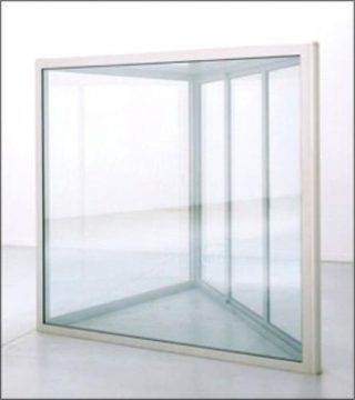 Dan Graham propose une oeuvre à la fois sculpturale et architecturale: «une machine optique». Le pavillon associe la sculpture minimale des formes géométriques simples à un mode de production industriel. L’architecture, pour sa capacité à révéler le «sujet social» est au centre des préoccupations de l’artiste.