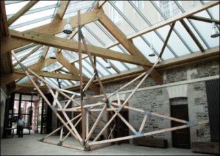 Clément Laigle est convié à réaliser une installation dans le hall du théâtre de Vitré, c’est-à-dire à investir un lieu qui n’est dédié à l’exposition mais qui permet à l’artiste d’engager une réflexion sur cette idée d’espace d’exposition en questionnant les matériaux, l’architecture et leurs utilisations.