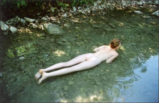 Enfin, dans une dernière photographie représentant une Ophélie au bain, la transparence d’un ruisseau dévoile l’extrême blancheur d’un corps nu. L’allusion au jardin d’Eden est évidente mais le paysage n’est pas aussi lisse qu’on pourrait le croire à première vue: sombre et pesant, il pourrait vite tourner à la menace. Plus fantôme que femme, ce personnage féminin rappelle ceux qu’affectionnaient les peintres symbolistes mais aussi les romanciers Gustave Flaubert et Virginia Woolf.