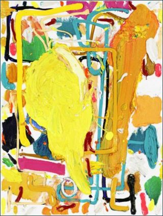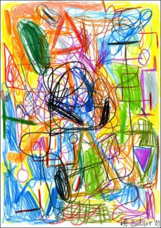 Puis, les figures tendent peu à peu à disparaître dans le fond pour laisser place au «monde» qui les entoure, marquant le passage du figuratif à l’abstrait, en faveur de l’autonomie des moyens picturaux. La structure semble anarchique, les motifs se mêlent sur la surface dans un chaos de couleurs éclatantes. L’empâtement et l’emploi de la peinture appliquée sur la toile directement depuis le tube deviennent la quasi-signature d’André Butzer.