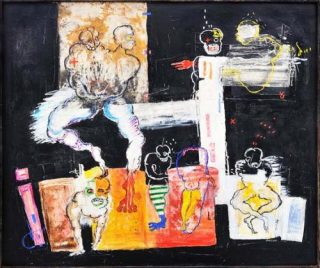 L’espace de ses toiles ou de ses feuilles s’anime de créatures hybrides et mystérieuses, en perpétuels mouvements et tensions oscillant de l’euphorie à la menace, sans qu’on puisse discerner la vraie nature de leurs rapports.