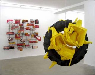 — Anita Molinero, Sans titre, 2009. Pneu, containers. 150 x 160 x 130 cm.