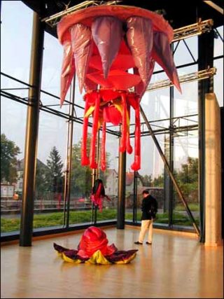 Anne Malherbe. Le travail d’Anne est un anti-art noble, car l’art noble doit se tenir, défier les lois de l’apesanteur alors que le mou s’effondre. L’élévation est ici tournée en dérision par le gonflement. Le mou avait déjà été introduit, notamment par Marcel Duchamp. Avec le gonflable, Anne introduit un art qui se redresse, mais de façon paradoxale puisqu’il se redresse grâce à l’air.