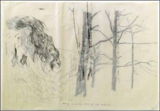 Un double visage de jeune fille apparaît dans Anywhere Out of the World composé de deux feuilles superposées. Les maigres troncs d’arbres du dessin de dessus masquent à peine ceux, massifs, de celui de dessous. De façon analogue, dans Lost in the Dark une forêt claire et accueillante en cache une sombre et dense.