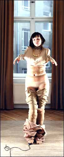 Objets ou accessoires d’ailleurs ? La théâtralité manifeste de l’œuvre tend à anéantir le réalisme de l’image pour libérer une tension teintée de perversion et d’humour. La mise en scène prend le pas sur le témoignage, le spectateur questionné sur la charge énigmatique et fantasmagorique de ces photographies n’est pas convié à participer. Les sujets de Von Hausswolff se noient ainsi dans un véritable décor.