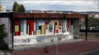 Le temps de l’exposition est rythmé par la diffusion en alternance de deux pièces sonores. La vidéo intitulée Le Clash (2010) donne à voir les déambulations de personnages autour d’un bâtiment moderniste, coloré, massif et désaffecté. D’un côté, un homme en possession d’une boîte à musique; de l’autre, un couple poussant un orgue de Barbarie.