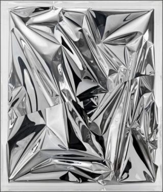 Sa série de miroirs, elle aussi protégée par ce coffre de plexiglas, révèle la faculté d’un matériau pauvre tel que l’aluminium à se transcender dès lors qu’on lui confère la charge émotionnelle propre à l’Å“uvre d’art. Posté devant ces feuilles d’aluminium, le spectateur voit dans les plis travaillés d’Anselme Reyle d’authentiques drapés baroques. Et la lumière «fractionnée» qui s’échappe de la surface en éclats subtils habite une espèce de beauté magique. Un Veau d’or contemporain.