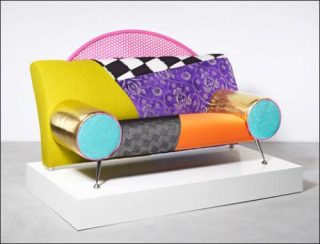 Le canapé à la manière d’Ettore Sottsass, manifeste du design postmoderne dont il n’est qu’une copie grossière clôt l’espace feutré du rez-de-chaussée et ouvre sur la collaboration avec Franz West.
