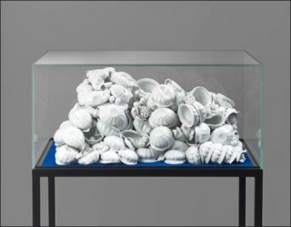 Et d’hommage, il y en a d’autres. La sculpture organique façon Henry Moore au rendu hyper laqué et déposée sur socle impeccable. Le néon de Flavin qu’il va rattacher à l’esthétique publicitaire dans un contexte formaliste abstrait. Puis l’insubmersible ready-made dont il repousse la logique: ses tasses cabossées en porcelaine, encapsulées sous une cloche en verre virginale perdent en ironie duchampienne ce qu’elle gagne en cynisme.