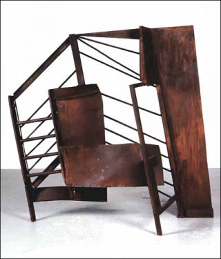 — Castille, 1995-1997. Acier, bois, pierre. 123 x 127 x 70 cm.