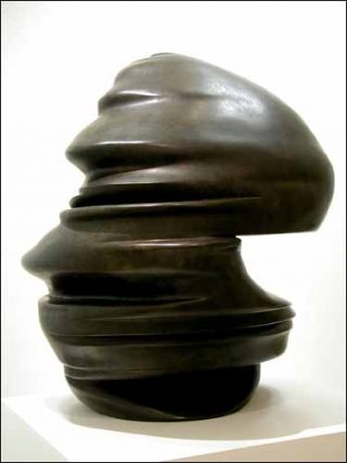 La première sensation est une sensation de masse : première confrontation, premier contact avec ces volumes réalisés dans un bronze souvent travaillé par plissement, souvent veiné à la manière du marbre. De cette masse polymorphe, se détache ou, mieux, s’extrait presqu’aussitôt une forme distincte — pour ce qui concerne Line of Thought, un visage vu de profil… Visage étiré comme peuvent l’être les choses anamorphosées, qui procède à l’évidence d’un modelage soucieux de clarification : l’arcade sourcilière mais pas les yeux, l’arête vive du nez, la fente de la bouche, c’est à peu près tout.