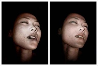 Dans des hôtels minables des «entrailles de la basse ville» sont photographiés, et exposés en séries, des corps de femmes abîmés par la prostitution à bon marché, la drogue, le viol et tous les outrages et violences là accumulés. Les corps dénudés sont convulsés par l’angoisse ou l’addiction, par toutes les douleurs. Les actes sexuels, eux aussi extraits photographiquement de l’ombre et présentés en séries, ne rapprochent pas des êtres de chair et de désir, mais des spectres désincarnés dépourvus de formes humaines. Les visages sont nombreux, et souvent en grand format, mais ce ne sont pas des portraits destinés à exprimer des individualités, ce sont des clichés de visages sur lesquels le flou des formes, la noirceur de l’ombre, et les cris et rictus de la souffrance dessinent le terrible masque de la mort. Car, à l’opposé de la fiction du plaisir scénarisée par le spectacle pornographique, Antoine d’Agata cherche à capter les expressions de cette réalité de la mort qui, dans les «zones de non-droits», envahit les visages et les corps des femmes, des prostituées, mais aussi des enfants violés.