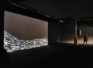 On s’engouffre alors dans un immense couloir, absorbé par l’écran géant (TV Channel) qui projette en boucle plusieurs films de Philippe Parreno. Un visage de nouveau-né apparaît. Une plume se promène sur du papier, dont en perçoit en audio le grattement sur le manuscrit. La bande-son s’emballe dans des bruits mécaniques oppressants, auxquels font suite les échos de quelques légères notes de piano semblant provenir d’ailleurs: d’emblée, le spectateur se fait écraser par la puissance de feu et la taille des installations.