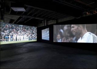 Dans le portrait de Zinédine Zidane, qui conclut l’exposition, le footballeur semble paradoxalement déconnecté de la trame du match, alors qu’il en est protagoniste. Il navigue, dérive sur le terrain, dix-sept caméras braquées exclusivement sur lui, et nous privant alors d’une vue globale du terrain. Son équipe, les «Galactiques» du Real Madrid, affronte Villareal. La scénographie propose ici un écran pour chaque caméra, fragmentant le match. Seuls les bruits du stade ou les paroles échangées entre joueurs donnent une continuité au tout. Auteur d’un match médiocre, l’idole Zizou offre tout de même une passe décisive à Ronaldo, et Madrid remporte le match. Mais au-delà des péripéties que l’on peut noter, la réalité du match est défaite. L’unité d’action se trouve brisée, le match apparaît déconstruit, haché, son fil dramatique perdu. Le Français semble nerveux et finit par se faire expulser à la fin de la rencontre. Il quitte alors le terrain et ses projecteurs pour s’engouffrer dans la pénombre du tunnel menant aux vestiaires, comme Philippe Parreno nous a fait quitter la réalité pour nous plonger dans l’obscurité et la mélancolie de son train fantôme.