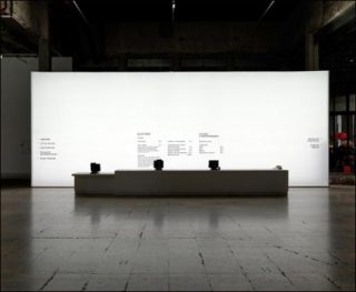 En attendant, le monde qui va s’ouvrir à nous demeure un vaste monde: les 22000 m2 du Palais de Tokyo. Avant même de pénétrer dans le lieu d’exposition, l’entrée du Palais est ornée d’une marquise lumineuse, à la manière d’un théâtre de Broadway. Aucune annonce n’est pourtant faite ici, aucun nom de spectacle ou d’exposition n’est brandi. Une fois dans le Palais, derrière les guichets, un grand panneau lumineux nous accueille, dont le but serait de faire apparaître chaque visiteur ou employé comme une ombre chinoise. Mais ne voudrait-on pas plus précisément nous transformer en de simples marionnettes?