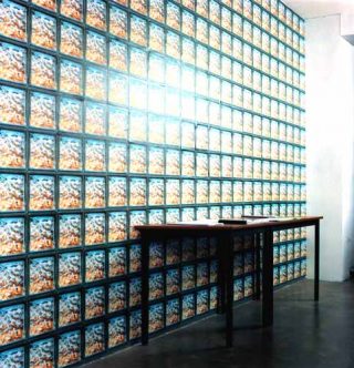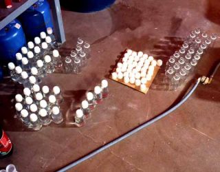— Dispositif de fabrication d’alcool de coca : palette de coca-cola, levure de bière, 10kl de sucre, corbeille de fruits, 2001