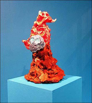 — Golem, 2007. Ceramic, acrylic paint wood base. 100 x 30 x 30cm.