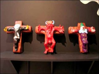 — Crucifixion (Diable,Clown,Mort), 2007. Ceramic, acrylic.