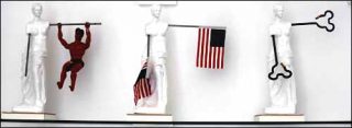 La bande dessinée est en bonne place, Spiderman et Mickey dévoyant la statuaire antique. Le viol esthétique consiste en peu de choses : un assemblage d’éléments anachroniques où les symboles d’une époque font tomber ceux d’une autre. Les troncs humains prennent le faciès de la célèbre souris de Disney, les moignons de Vénus sont prolongés par l’étendard américain…