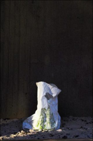 Paul Pouvreau interroge la circulation des images et les représentations que la cité donne d’elle-même. Les éléments photographiés sont des traces d’objets ayant une valeur économique liée aux activités productives de l’homme. Ce sont des matériaux de conditionnement de produits. Leur statut renvoie au conditionnement de notre regard pris dans le flux contemporain des images. (Extraits du dossier pédagogique de l’exposition «Matières premières» au CRAC de Sète).