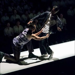Ils ne s’y cantonnent cependant pas. Le dispositif scénique met en lumière le déplacement d’un pôle vers l’autre, symbolisant l’envie d’aller toujours plus loin, par moment rattrapé par le lien indéfectible aux racines. Le spectacle représente ainsi la naissance du verbe, le progrès de la civilisation, mais aussi l’origine des arts. Yasutake Shimaji et Roy Tamaki explorent le cœur de leurs disciplines respectives : la répétition – celle des sonorités en musique, celle des gestes en danse.