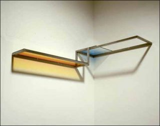 Strategy and Tactics, 2005. Acier, verre de couleur, bois. 20 x 80 x 110 cm.