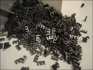 Modulor E ou La Réapparition : poême proliférant en kit d’après Georges Perec, 2007. Sculpture en ferrite ( détail ). Dimensions variables.
