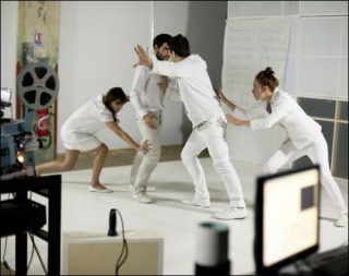 Dans la pièce, les acteurs prendront chacun en charge une partition, c’est-à -dire un parcours autonome, inspiré par les Å“uvres des photographes. Ces partitions sont comme des droites parallèles, indépendantes. Construite à partir d’improvisations, chaque partition se base sur les procédés de représentation utilisés par le photographe plutôt que sur ses galeries d’images. Elles fonctionnent ensemble par contrepoint, unisson, échos, répétitions…