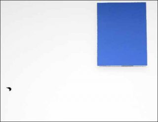 La trace des mains qui ont donné forme aux petites créatures d’argile est patente. Si au sol tout est matière, aux murs c’est le bleu du ciel qui domine sur des toiles où, ici et là , volent des oiseaux aux ailes déployées. Bouddhiste dans l’âme, Siobhan Liddell fait appel à la symbolique de l’oiseau de proie : c’est celui qui renouvelle les corps, il se nourrit de la chair des cadavres et les fait renaître dans un cycle nouveau.