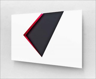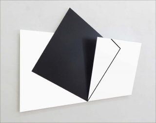 Les œuvres-installations de Gerhard Frömel se composent de plaques en aluminium, laquées de façon à former des figures géométriques aux lignes épurées. Les surfaces blanches sont traversées par de rares traits noirs ou d’aplats de couleurs vives. Conçues pour être regardées sur plusieurs plans, les créations mélangent des éléments plats à d’autres en relief, oscillant entre bidimensionnalité et tridimensionnalité selon l’emplacement du spectateur. Gerhard Frömel invite donc à se déplacer et à aller « au-delà des apparences ».