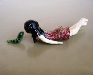 Chacun peut traduire le sens comme il peut, avec ses propres sentiments, ses propres fantasmes. L’étrangeté, l’aspect brut et figé du grès émaillé m’intéresse car il me permet de créer un décalage entre l’espace investi et le quotidien. Je préfère les petites échelles aux grands formats que je trouve oppressants. Cela m’aide à provoquer la curiosité et l’attention du spectateur.