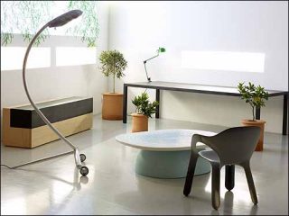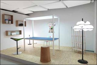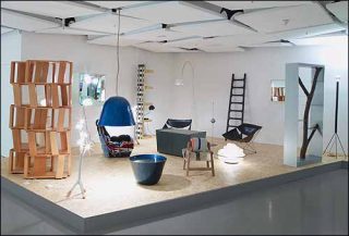 Le bureau Bakelite de Maarten van Severen (2001), sur lequel est posée une petite lampe agrafe Topo de Joe Colombo (1969) accueille des ouvrages en consultation libre. Et on s’assoirait bien sur le Banc d’eau de David Dubois (2008) ou sur la chaise Easy de Jerszy Seymour (2003) pour lire un moment, après avoir négligemment déposé sa veste sur le porte manteau Hanger de Naoto Fukasawa (2008), simple planche dans laquelle sont plantés de gros clous. Mais la salle est bien gardée. Mieux vaut passer au salon. Poursuivons la traversée, munis du plan que la galerie met à la disposition des visiteurs intrépides.