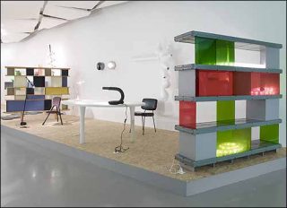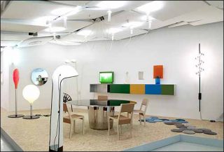 Sur le mode de la conversation. Le dialogue entre les pièces, et avec le visiteur, même s’il est historique (1952-2008), ou fait de références (hommage des frères Bouroullec à madame Perriand avec la bibliothèque Charlotte, 2000), s’engage ailleurs. Il semble plutôt s’instaurer dans le dépareillement des objets, dans leurs états différents, usagés, affaissés, un peu sales, retapissés ou tout juste sortis de l’atelier du fabricant, et dans leur style aussi, radicaux (Szekely) ou plus fantaisistes (Mendini ou Sottsass). Des choses hétéroclites, donc, qui vivent ensemble et qui composent un tout homogène, une espèce de personnalité de l’espace raconté… et du collectionneur. Au salon, les fauteuils F675 de Pierre Paulin (vers 1963), l’air un peu vieux, devisent avec la Rag Chair de Téjo Remy (1991). Dans le bureau, le miroir Y de Pierre Charpin (2006) s’accorde avec les tables de la collection Ollo, dessinées par Alessandro Mendini en 1988.
