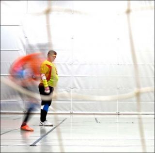 Aurora bouclera la boucle de cette recherche sur le «déracinement» des disciplines. Cette création se consacre à nouveau à l’étude poussée d’une pratique physique, arrachée à son contexte puis dépaysée par différents moyens scéniques (temps, espace, son). Mais c’est au Goalball que l’artiste s’est intéressé cette fois: une discipline paralympique relativement méconnue, et pratiquée par des non-voyants et des malvoyants. Equipés de masques pour évoluer à égalité dans l’obscurité, ces joueurs de foot particuliers se repèrent sur un terrain de jeu grâce au son de la clochette à l’intérieur du ballon.