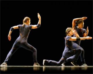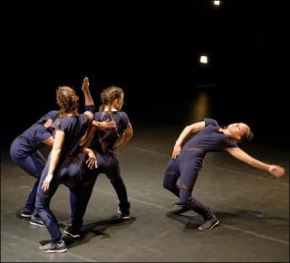 Dans Autarcie (….), avec quatre points de suspension comme les quatre danseuses de la pièce, elle confronte ainsi le break, ou danse au sol dont elle est l’une des spécialistes, et le popping, qui se danse debout. Chacune de ces formes induit une configuration particulière : concentrique et centrifuge pour la première, frontale et face au public pour la seconde. Cette opposition nourrit une chorégraphie conçue comme un jeu de stratégie, dont les quatre interprètes féminines sont tour à tour les meneuses.