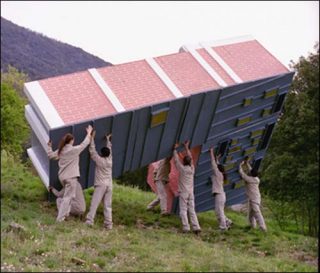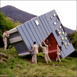 Dans un monde en perpétuelle mutation, la position statique n’est plus de mise. Les photographies de Daniel Chust Peters jouent sur les paradoxes. Une maison préfabriquée est déplacée par un groupe de personnes sur une montagne. La question de la prolifération de constructions et du respect de l’environnement est ici évoquée. La maison est transportée vers le bas de la montagne, hors de l’espace naturel où elle n’a pas sa place.