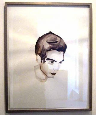 François-Xavier Courrèges exprime habituellement en vidéo, de manière sensible et contemplative, son univers mental où se déroulent de petits événements subtils, qui sont comme des possibilités d’histoires, sans qu’un récit nous soit donné. Ici, avec l’aquarelle After Trouble (J.C. dec 2005), il traduit sous une autre forme, esthétiquement apaisée, son univers intime. L’œuvre, visuellement très simple et très modeste, est un portrait de son petit frère, le regard tranquille et méditatif.